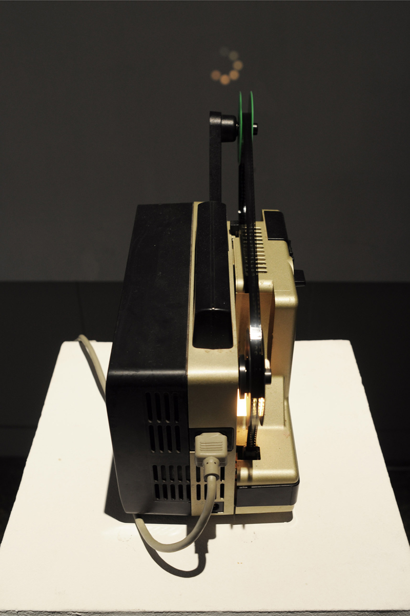 Révolutions reveals a confrontation between different loops and media ages. The digital loading circle has been transferred on a Super8 film, echoing back to the begining of popular cinema standards. The screening adopts a reversed movement on mediatic history and observes its evolution through a cyclic-like process by archiving a digital native loop on an obsolete medium.